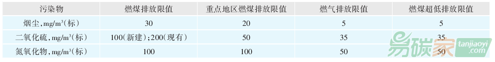 表1GB13223-2011《火電廠大氣污染物排放標準》規(guī)定的燃煤鍋爐超低排放值