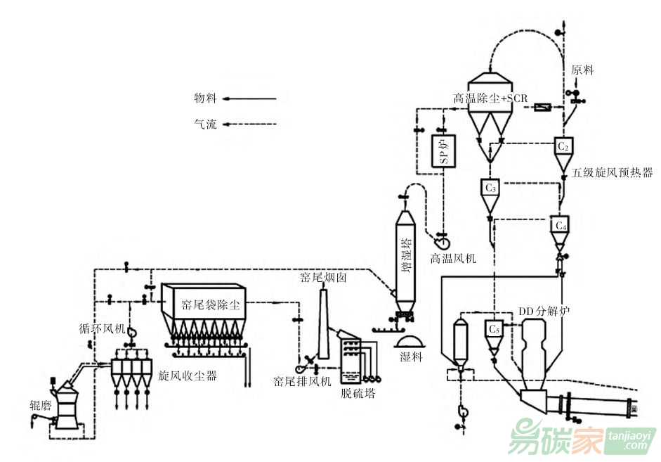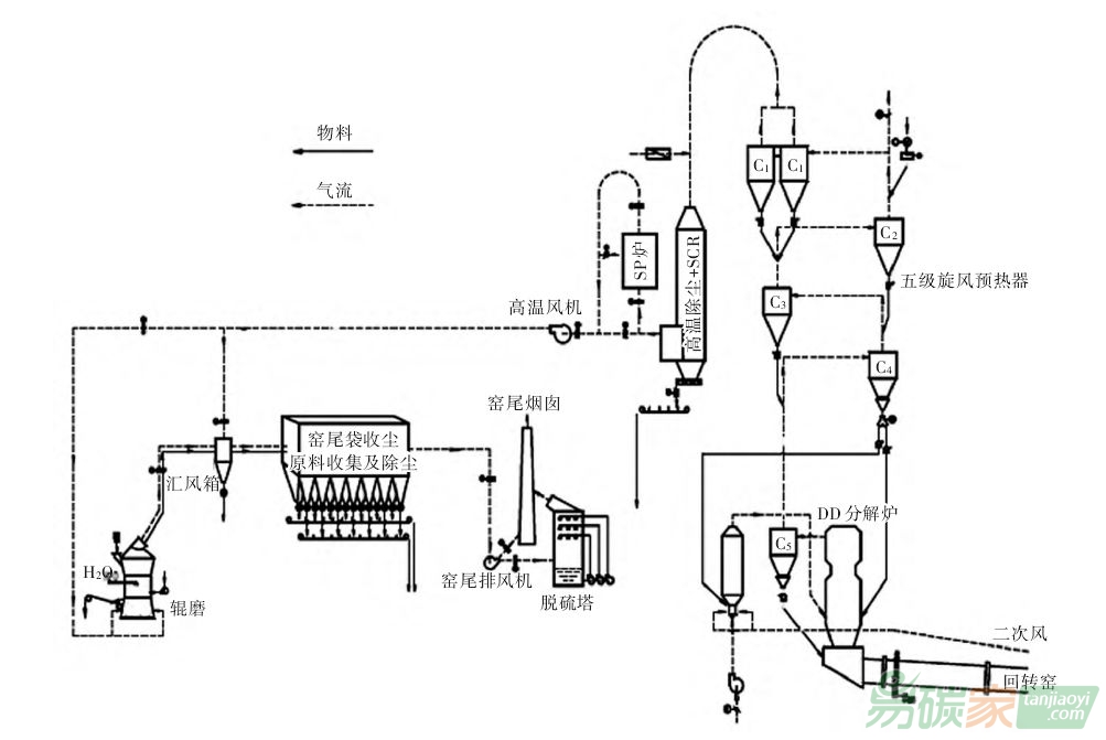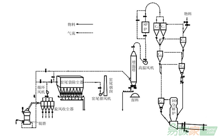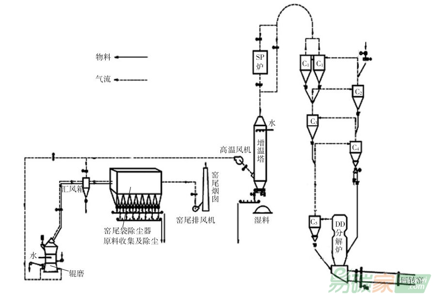 2現(xiàn)有干法水泥熟料生產(chǎn)線窯尾系統(tǒng)典型工藝簡介