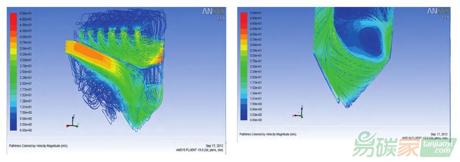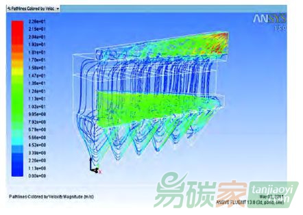 圖14贊皇金隅1線2500t/d窯尾除塵器風速流場流線圖