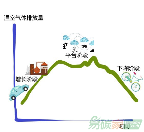 達(dá)峰是全人類(lèi)應(yīng)對(duì)氣候變化的重要途徑。在應(yīng)對(duì)氣候變化領(lǐng)域,達(dá)峰指一定區(qū)域內(nèi)的一種或幾種溫室氣體的排放水平不再繼續(xù)增長(zhǎng)。達(dá)峰并不單指溫室氣體排放在某一年達(dá)到最大值,而是一個(gè)動(dòng)態(tài)過(guò)程(見(jiàn)下圖),在此過(guò)程中,溫室氣體排放先進(jìn)入平臺(tái)期,并可能在一定范圍內(nèi)波動(dòng),然后進(jìn)入平穩(wěn)下降階段。
