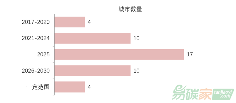 深圳、延安、晉城、烏魯木齊、青島、濟(jì)南等城市提出了達(dá)峰目標(biāo)時(shí)間,均早于全國(guó)達(dá)峰時(shí)間。