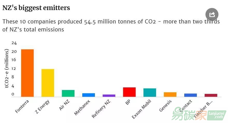 本地媒體Stuff對(duì)當(dāng)?shù)睾芏嗥髽I(yè)的報(bào)告、排放交易計(jì)劃文件以及全球碳排放文件進(jìn)行研究,統(tǒng)計(jì)出可能是新西蘭碳排放量最大的10家公司。