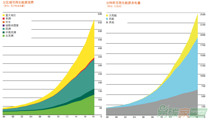 ◆ 2018年,中國(guó)可再生能源消費(fèi)增長(zhǎng)29%,占全球增長(zhǎng)的45%。