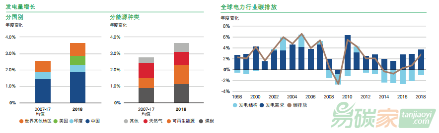 電力需求的強(qiáng)勢(shì)增長(zhǎng),尤其是發(fā)展中國(guó)家的需求,使得電力行業(yè)的脫碳十分困難。2018年,