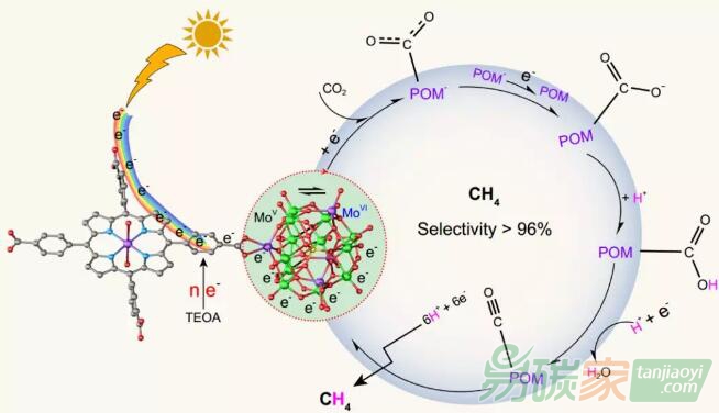 在最新發(fā)表于《國家科學評論》(National Science Review,NSR)的文章中,南京師范大學蘭亞乾教授課題組構建了多酸基金屬配位骨架(POMCF)化合物,其在光催化CO2還原系統中對CH4的生成具有高選擇性(>96%)。