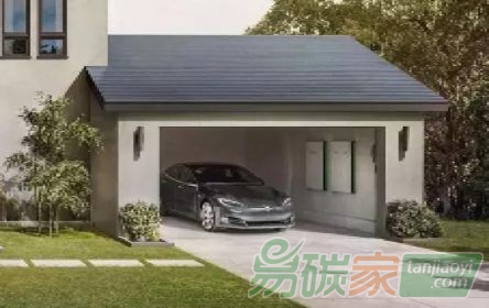 上圖車庫屋頂為Solar Roof發(fā)電系統(tǒng),車庫內(nèi)右側(cè)安裝有Powerwall電池充電系統(tǒng)