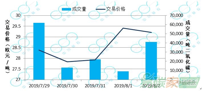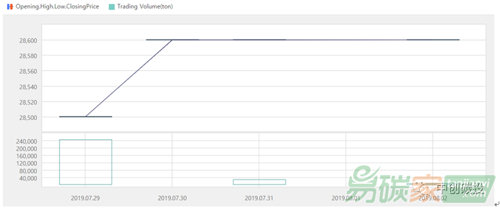 2019年07月29日至2019年08月02日,韓國碳市場價格在28500-28600韓元/噸(約23.66-23.74美元/噸)之間波動。