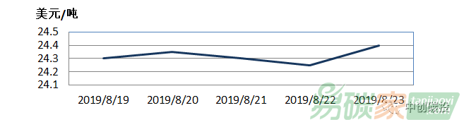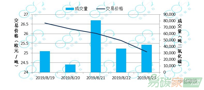 2019年08月19日至2019年08月23日,新西蘭碳市場(chǎng)價(jià)格在24.25-24.40美元/噸之間波動(dòng)。