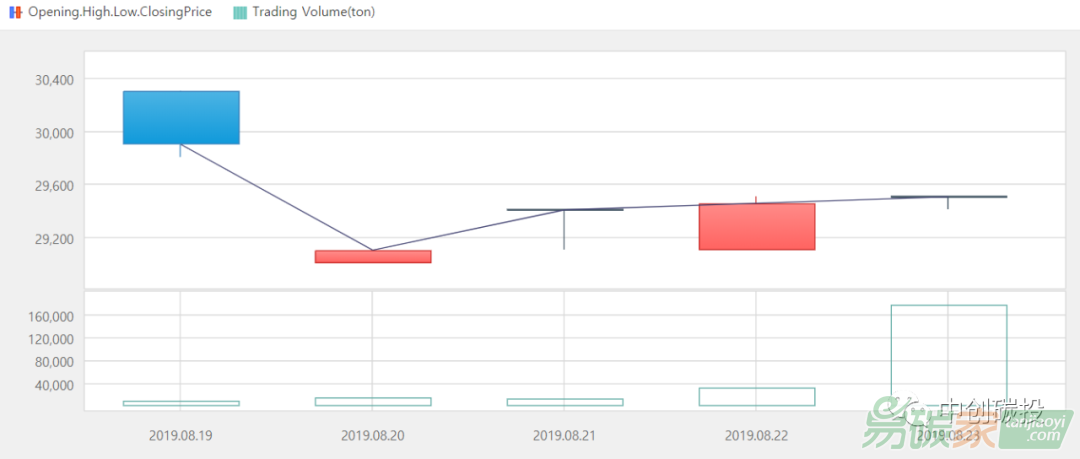 2019年08月19日至2019年08月23日,韓國(guó)碳市場(chǎng)價(jià)格在29100-29900韓元/噸(約23.87-24.66美元/噸)之間波動(dòng)。