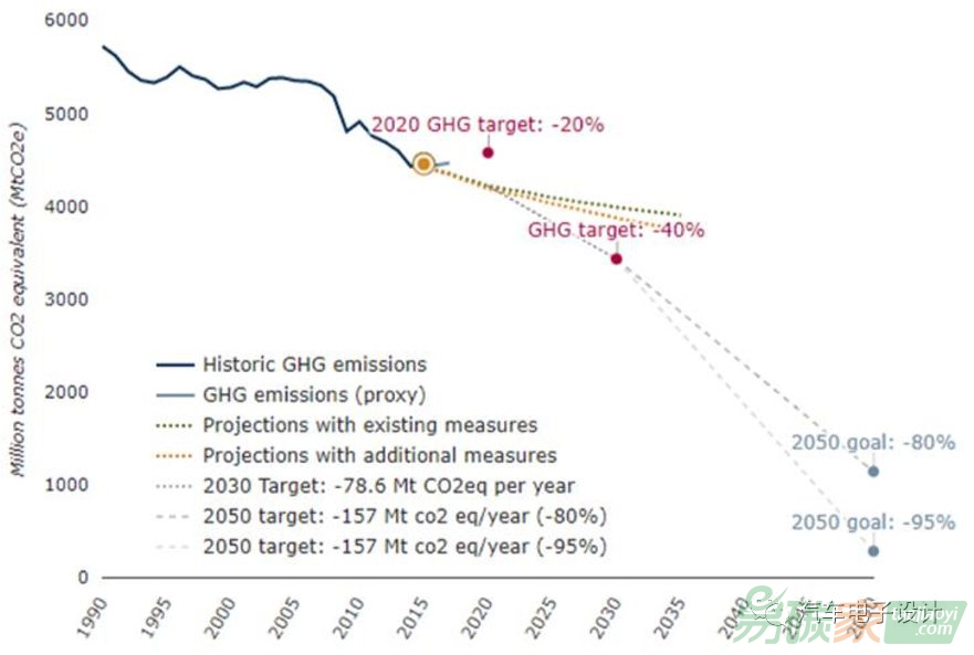 節(jié)能意識最強的地區(qū),事實上也是這么標榜的,所以在各個行業(yè)一直積極地推動碳排放水平的降低。整個路徑就是一直推進,永不回頭:2007年通過的《2020氣候和能源一攬子計劃》提出到2020年, 將溫室氣體在1990年水平上降低20%2011年公布的《 2050競爭性低碳歐洲路線圖》 設(shè)定2050年降低80-95%2018年則提出了力圖2050年實現(xiàn)凈碳排放量為零的愿景