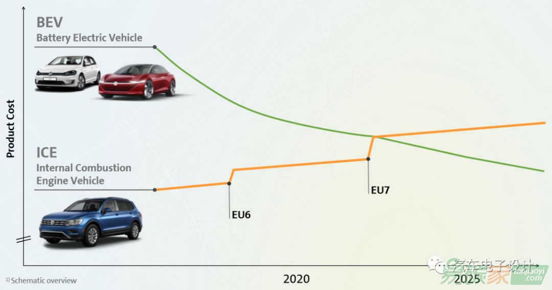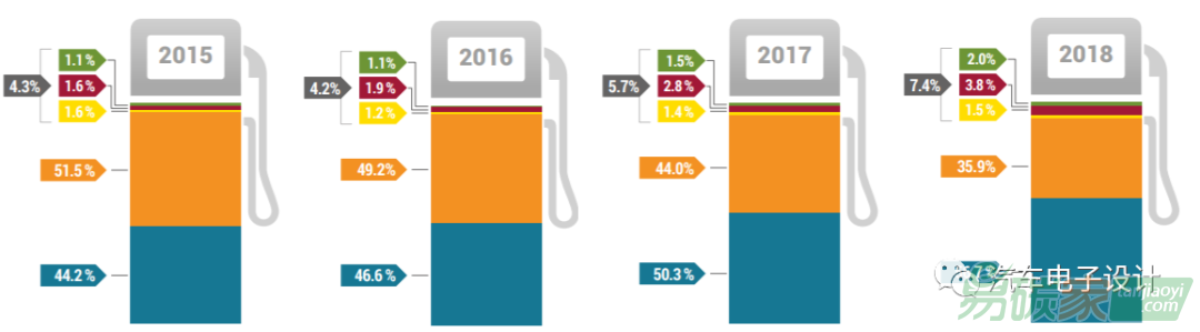我們可以看到在2015年的達標下,柴油車也達到了一個階段性的頂峰。這個拐點是排放門事件深遠的影響,基本把這條路線打廢了。