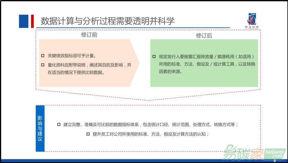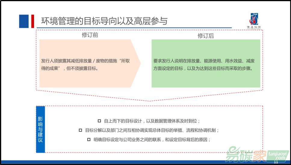 - 更加關(guān)注與氣候變化相關(guān)的定量指標的披露(如范疇1、范疇2的溫室氣體排放量),以及相關(guān)規(guī)劃和策略(如政策、行動、目標等方面)的披露
