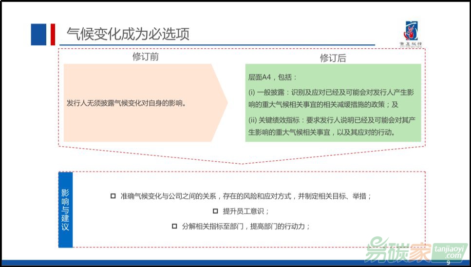 重視應對氣候變化。港交所這個咨詢文件多次引述“氣候相關(guān)財務信息披露(TCFD)”工作小組的政策建議,并明確了范疇1和范疇2的溫室氣體排放,應該引起上市公司的重視,特別是金融類的上市公司也應該重視應對變化,熟悉TCFD的政策建議。