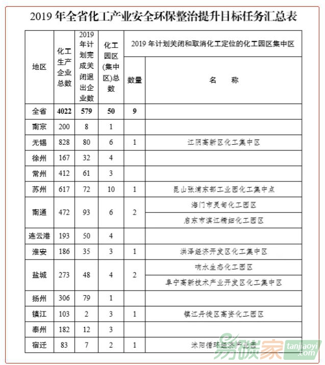 關(guān)1431家,9化工園區(qū)《2019江蘇化工安全環(huán)保整治目標(biāo)》