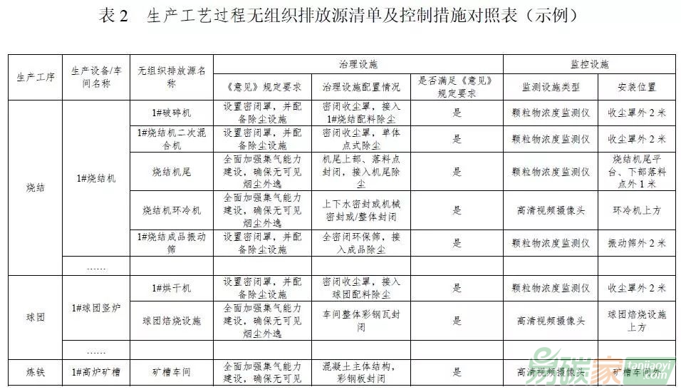 按照《意見(jiàn)》和《排污許可證申請(qǐng)與核發(fā)技術(shù)規(guī)范 鋼鐵行業(yè)》要求,對(duì)全廠相應(yīng)有組織排放源進(jìn)行全面排查,建立有組織排放源清單,明確治理技術(shù)路線和監(jiān)控措施,清單格式和內(nèi)容可參考附表1。
