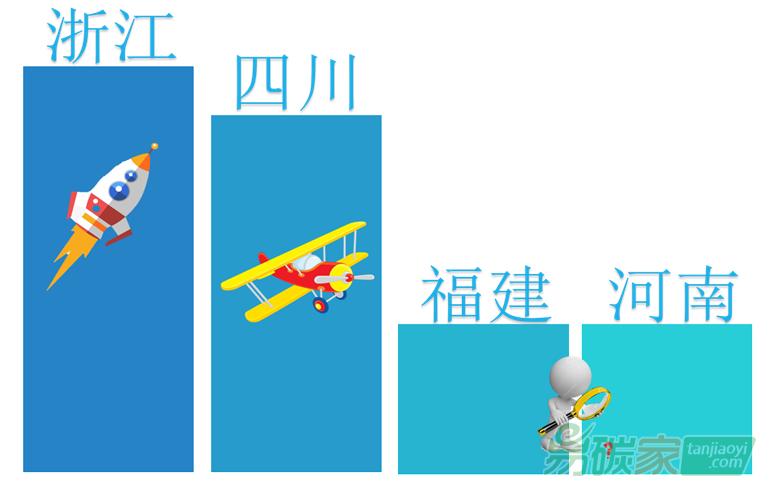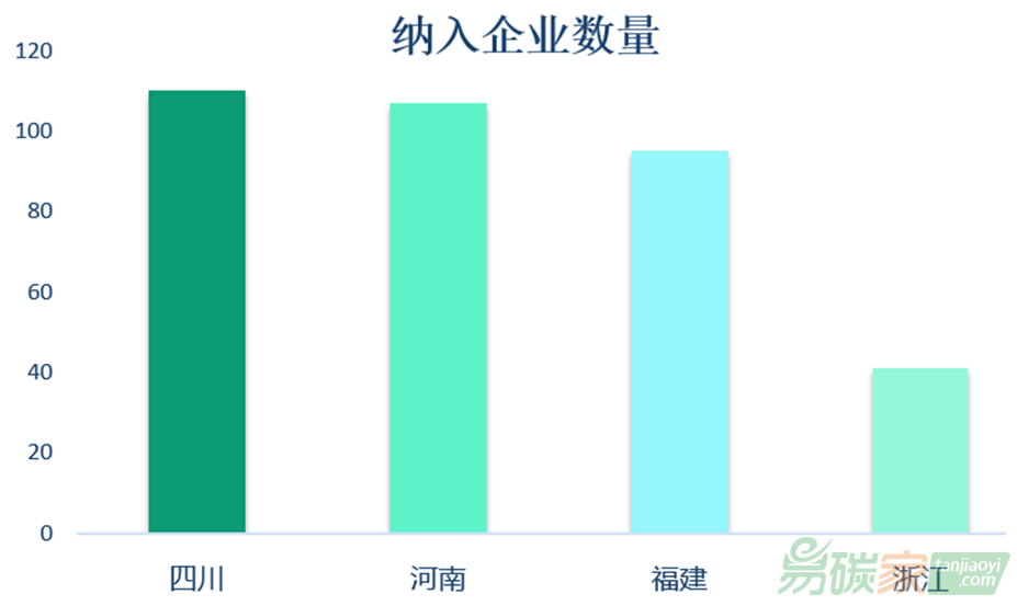 在納入企業(yè)數(shù)量方面,四川河南兩省最多,均超過(guò)100家企業(yè)參與交易。浙江較少,只有40家左右。