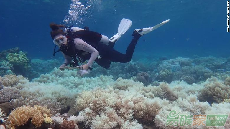 2017年3月,一名潛水員正在檢查大堡礁的珊瑚白化現(xiàn)象 | https://edition.cnn.com/2017/04/10/asia/great-barrier-reef-coral-bleaching/index.html