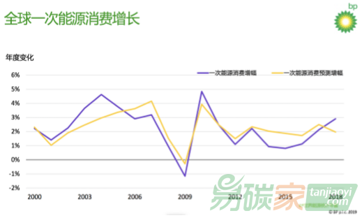 7月30日,BP發(fā)布《BP世界能源統(tǒng)計年鑒》(以下簡稱“《年鑒》”),年鑒指出:2018年全球一次能源需求在2018年增長2.9%,這是2010年以來的最快增速。與此同時,能源消費產(chǎn)生的碳排放增長2%,同樣是多年來的最高水平。新產(chǎn)生的碳排放達6億噸,相當于在地球上增加三分之一的乘用車所產(chǎn)生的排放。