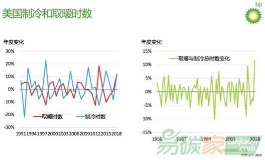 《年鑒》指出,2018年全球多個主要能源消費國都遭遇大量的異常天氣,特別是美國、中國和俄羅斯。供暖或制冷等需求的增加導致了能源消費的增長。在美國,取暖和制冷時數(shù)(根據(jù)美國國家海洋和大氣管理局的定義)罕見地同時增加。在過去,取暖時數(shù)的增長往往伴隨著制冷時數(shù)的減少,反之亦然。但在過去的一年里,美國的取暖和制冷時數(shù)總和是1950年以來的最高位,這極大地刺激了美國的能源需求。