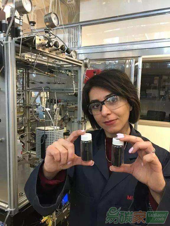 “這是一個(gè)將天然氣和二氧化碳(均稱為溫室氣體)轉(zhuǎn)化為固體碳納米纖維的過程,可以以磚或粉末的形態(tài)出售給多種工業(yè),”Zarabian在訪問她的實(shí)驗(yàn)室期間說。