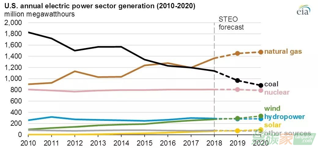 市場報告》,截至2018年,美國風(fēng)電裝機(jī)容量超過96GW,風(fēng)力發(fā)電量約占美國發(fā)電總量的6.5%。 在風(fēng)電新增規(guī)模大幅增長的同時,美國風(fēng)力發(fā)電量也將增長。在美國,水力發(fā)電一直是其可再生能源發(fā)電的主要來源。EIA預(yù)計,2019年,2019年風(fēng)力發(fā)電量將增長6%,將首次超過水力發(fā)電量,成為美國可再生能源發(fā)電的主要來源。2020年,風(fēng)力發(fā)電量將繼續(xù)增長,仍居美國可再生能源發(fā)電量的首位。