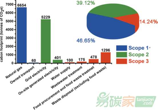碳排放的不同環(huán)境部門定量分析耦合路徑對于促進(jìn)區(qū)域尺度下的綜合性可持續(xù)管理至關(guān)重要。大學(xué)自身可被視為小型區(qū)域,它提供了區(qū)域尺度的數(shù)據(jù),并通過教育、學(xué)術(shù)研究以及財產(chǎn)運(yùn)作為全球可持續(xù)發(fā)展做出貢獻(xiàn)。本研究基于不同環(huán)境足跡組合構(gòu)建了一個耦合概念分析框架,并通過校園運(yùn)營和食品采購對小型區(qū)域的水循環(huán)、能源和氣候間的相互作用進(jìn)行評價。以英國基爾大學(xué)(Keele University)為例,2015~2016學(xué)年的總能源足跡、總