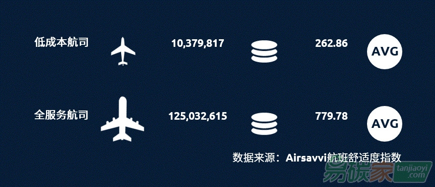 為控制運(yùn)營成本,大多數(shù)低成本航空公司都不提供頭等艙或商務(wù)艙,不僅降低服務(wù)成本,還減少了寬敞座椅對(duì)機(jī)艙面積的占用。同時(shí),低成本航司往往可能會(huì)在單一艙位中增加更多的座位,提升飛機(jī)的承運(yùn)能力。