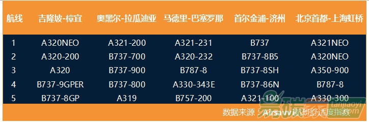 而在熱門洲際航線上,波音777、波音787、空客380、空客330等作為先進(jìn)寬體客機(jī),由于燃油經(jīng)濟(jì)性及載客量較大等原因,也位于環(huán)保機(jī)型榜單之列。