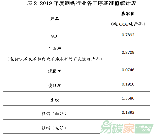 2019年鋼鐵行業(yè)配額分配方案較之前,不再區(qū)分長(zhǎng)短流程企業(yè),而是改為細(xì)分工序進(jìn)行分配,按照生產(chǎn)工序分為九個(gè)部分:煉焦、石灰燒制、球團(tuán)、燒結(jié)、煉鐵、煉鋼(轉(zhuǎn)爐)、煉鋼(電爐)、鋼壓延與加工、自備電廠,配額為本企業(yè)各生產(chǎn)工序配額之和。其中煉焦、石灰燒制、球團(tuán)、燒結(jié)、煉鐵、煉鋼工序采用基準(zhǔn)法分配配額,鋼壓延與加工工序采用歷史法分配配額,自備電廠采用歷史強(qiáng)度法分配配額。計(jì)算公式如下:企業(yè)配額=各基準(zhǔn)法工序產(chǎn)品產(chǎn)量×各基準(zhǔn)法工序產(chǎn)品對(duì)應(yīng)基準(zhǔn)值+鋼壓延與加工工序配額+自備電廠配額基準(zhǔn)法各工序基準(zhǔn)值如下: