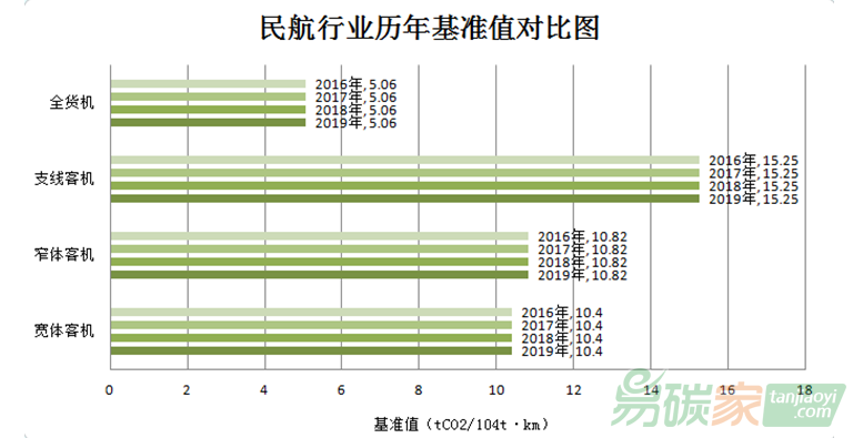 2019年度民航行業(yè)配額分配基準(zhǔn)線基準(zhǔn)值較2018年度沒(méi)有變化,歷年基準(zhǔn)值對(duì)比如下: