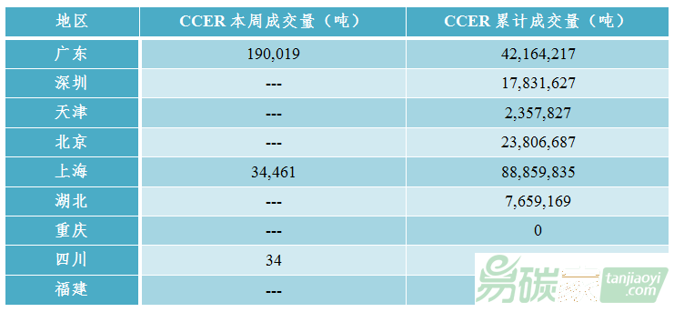ccer成交19萬噸,均為協(xié)議轉(zhuǎn)讓;PHCER成交19.74萬噸,均為競價交易。
