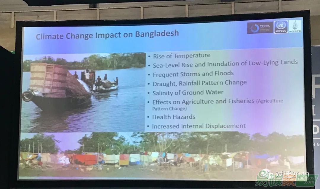 12月11日,主題為“南亞的損失與損害:朝向更包容的評(píng)估和行動(dòng)”聯(lián)合國(guó)邊會(huì)上,孟加拉國(guó)的環(huán)境部長(zhǎng)用鏗鏘有力、飽含悲情的語(yǔ)言講述了今年九月的臺(tái)風(fēng)給該國(guó)帶來(lái)的慘重的損失,為該國(guó)因海平面上升和極端天氣事件受到慘重影響的漁民和農(nóng)民們大聲疾呼:“沒(méi)有時(shí)間忽視這個(gè)真相了,全球必須拿出共同的政策框架去面對(duì)這個(gè)事實(shí),發(fā)達(dá)國(guó)家需要切實(shí)采取行動(dòng)!”