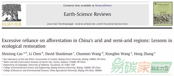 實際上,關(guān)于西北干旱地區(qū)“植樹造林”是否“耗水”問題,中國有關(guān)學者也在很早就展開相關(guān)研究。2011年在國際著名地學期刊《Earth-Science Rexiews》上,一篇名為《Excessive reliance on afforestation in China's arid and semi-arid regions: Lessons in ecological restoration》文章就指出,中國西北干旱地區(qū)植樹造林需要因地制宜,選擇灌木草本或原生植物環(huán)境改善。