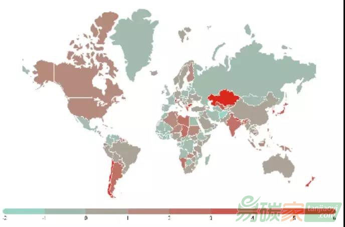 注:富裕國家是指經(jīng)購買力平價調(diào)整后的人均GDP高于1980年全球中位數(shù)的國家;貧窮國家是指經(jīng)購買力平價調(diào)整后的人均GDP低于1980年全球中位數(shù)的國家;溫度較高的國家是指歷史平均氣溫高于全球中位數(shù)的國家;溫度較低的國家是指歷史平均氣溫低于全球中位數(shù)的國家。