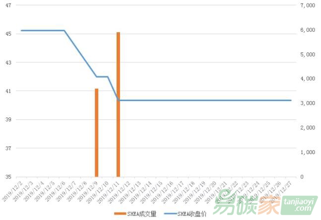 碳配額(SHEA)現(xiàn)貨線上及協(xié)議轉(zhuǎn)讓本周繼續(xù)無成交。收盤價(jià)方面,SHEA價(jià)格繼續(xù)維持12月11日收盤時(shí)的40.35元/噸不變。