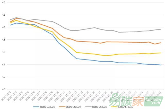 12月23日至12月27日,上海碳配額遠(yuǎn)期中央對(duì)手清算業(yè)務(wù)保持平穩(wěn)運(yùn)行。價(jià)格方面,流通協(xié)議價(jià)格受短期內(nèi)政策不確定因素影響略有波動(dòng)。其中,2020年2月協(xié)議期末結(jié)算價(jià)41.95元/噸,較上周五環(huán)比下跌0.19元/噸,2020年5月協(xié)議期末結(jié)算價(jià)43.75元/噸,較上周五環(huán)比下跌0.05元/噸。
