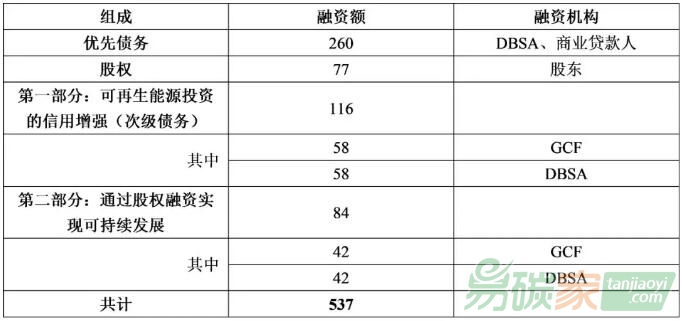 項(xiàng)目將通過優(yōu)先債務(wù)(占48%,2.6億美元),次級(jí)債務(wù)(占22%,1.16億美元)和股權(quán)(占30%,1.61億美元)的組合進(jìn)行融資。優(yōu)先債務(wù)將由商業(yè)銀行和DBSA提供資金。GCF向該計(jì)劃提供的資金總額為1億美元,將用于以下兩個(gè)方面: