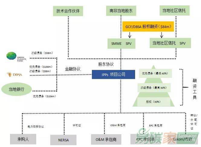 綠色氣候基金(GCF)是由“聯(lián)合國(guó)氣候變化框架公約”(UNFCCC)締約方的194個(gè)國(guó)家建立的,作為“公約”財(cái)務(wù)機(jī)制的一部分,旨在為發(fā)展中國(guó)家減緩和適應(yīng)氣候變化提供資金。目前GCF從43個(gè)國(guó)家共籌集了103億美金,其項(xiàng)目投資通過執(zhí)行機(jī)構(gòu)進(jìn)行,已經(jīng)授權(quán)了88個(gè)執(zhí)行機(jī)構(gòu)。本文通過分析GCF在南非支持的可再生能源嵌入式發(fā)電計(jì)劃,提出對(duì)中國(guó)的借鑒建議。