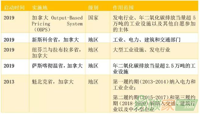 表1.加拿大現(xiàn)存碳市場統(tǒng)計