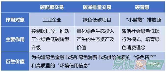 減排量碳市場構(gòu)成,重點管控工業(yè)領(lǐng)域大規(guī)模排放源和減排項目。為了填補二者在管控范圍上的空白,