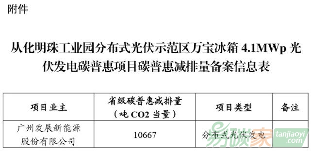 《廣州市生態(tài)環(huán)境局關于從化明珠工業(yè)園分布式光伏示范區(qū)萬寶冰箱4.1MWp光伏發(fā)電碳普惠項目申請備案委省級碳普惠核證減排量的請示》收悉。經(jīng)審核,從化明珠工業(yè)園分布式光伏示范區(qū)萬寶冰箱4.1MWp光伏發(fā)電碳普惠項目減排量符合《廣東省安裝分布式光伏發(fā)電系統(tǒng)碳普惠