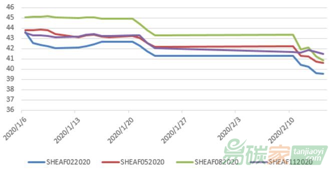 【上海碳配額遠(yuǎn)期】節(jié)后延遲開市首周現(xiàn)貨市場無成交,遠(yuǎn)期市場價格小幅下跌(2/10-2/14)
