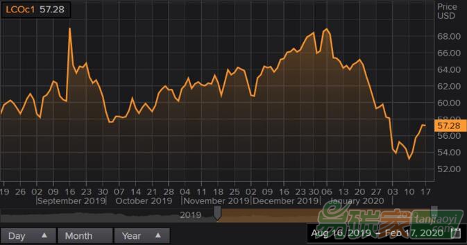 圖1:截至2020年2月17日布倫特原油價(jià)格(數(shù)據(jù)來(lái)源:Refinitiv Eikon)