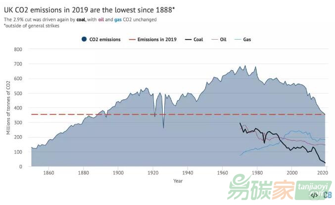 據(jù)英國(guó)CarbobBrief匯總的數(shù)據(jù),英國(guó)2019年的二氧化