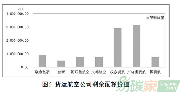 碳排放的目的;另一方面,各航空貨運企業(yè)由此所獲得的利益以及對成本產(chǎn)生的影響也差異巨大,如圖6 所示,漢莎航空、盧森堡航空這類歐盟地區(qū)貨運航空公司由剩余配額所獲得的收入達300 萬歐元,比非歐盟國家航空高出60% 左右,因此帶來不同航空公司間的不公平競爭。