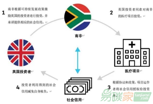 1. 在預(yù)認(rèn)證階段,為確立南非的“東道國”資格, 先是評估了項目將產(chǎn)生的交易成本、社會影響和正外部性價值這三項必要條件,同時商討決定了試點項目將產(chǎn)生的信用數(shù)量;接著,篩選出項目可覆蓋的具體南非醫(yī)療項目清單,這樣遠(yuǎn)在英國的投資者便可以指定清單中的項目來進行投資。