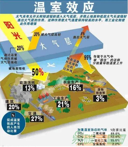在近一個(gè)世紀(jì),造成全球氣候變暖的主要原因,是人類使用化石燃料(煤、石油等)排放出大量的二氧化碳及其它溫室效應(yīng)的氣體。溫室效應(yīng)自地球以來(lái)便是一直存在的,如果沒(méi)有溫室效應(yīng),那么地球常年都處在20℃以下。