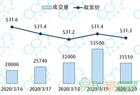 2020年3月16日至2020年3月20日,韓國(guó)碳價(jià)從31.6美元下跌至31.3美元每噸,下跌1.0%。