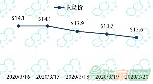 2020年3月16日至2020年3月20日,新西蘭碳價(jià)自14.1美元下跌至13.6美元每噸,下跌4.0%。