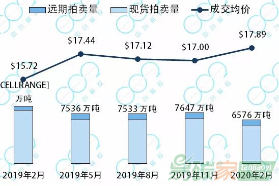 2月19日加州-魁北克碳市場(chǎng)舉行了本年第一次拍賣,拍賣配額現(xiàn)貨5709萬噸全部成交,成交價(jià)17.87美元每噸;拍賣2023年生效的配額867萬噸全部成交,成交價(jià)18.00美元每噸。